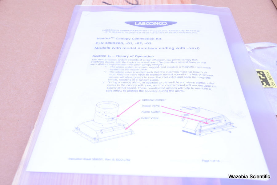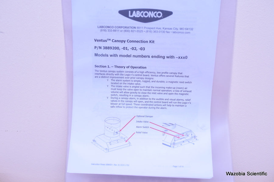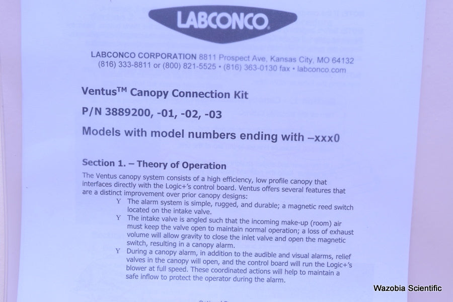 LABCONCO VENTUS CANOPY CONNECTION KIT P/N 3889200