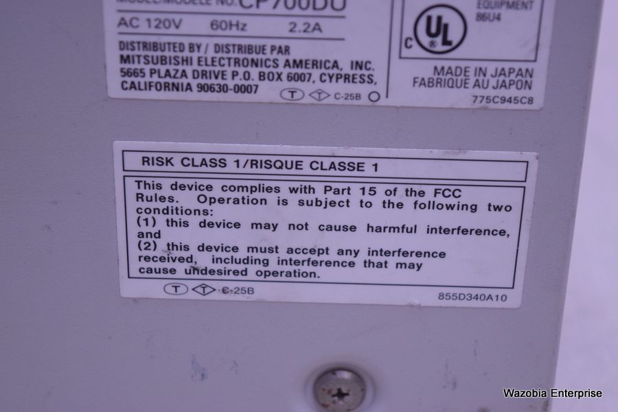 MITSUBISHI DIGITAL COLOR PRINTER MODEL CP700DU