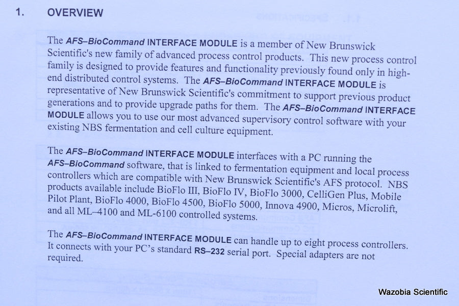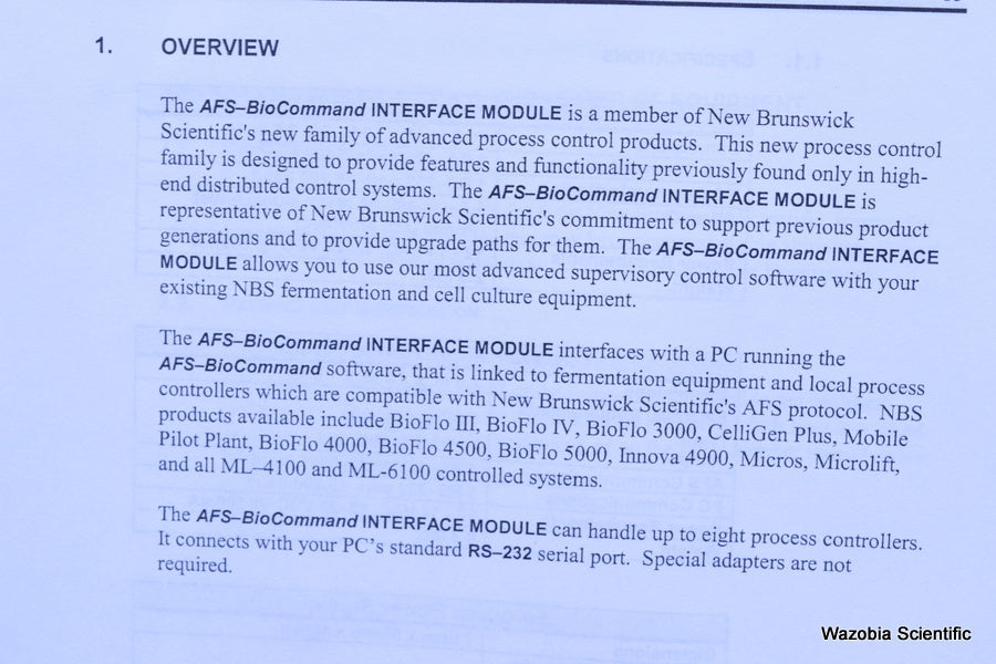 NEW BRUNSWICK AFS-BIOCOMMAND INTERFACE MODULE M1212-0101 WITH MANUAL